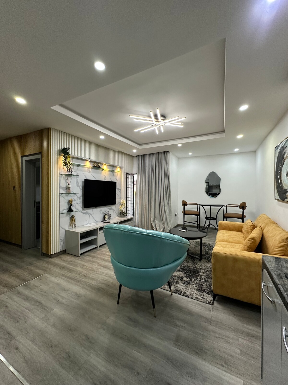 Encantador carácter industrial y comodidad hogareña de primera calidad. A un agradable paseo de las tiendas, restaurantes y vida nocturna de Admiralty Way, Lekki, fase 1. Relájate en la piscina o disfruta de películas por satélite, Netflix o Amazon. Fibra óptica superrápida wi-fi. Respaldo de energía del generador ininterrumpido para la comodidad del aire acondicionado las 24 horas, los 7 días de la Departamento tranquilo. No apto para ninguna reunión. Estrictamente para no fumadores. Por favor, no reserves este apartamento si algún huésped previsto es fumador.