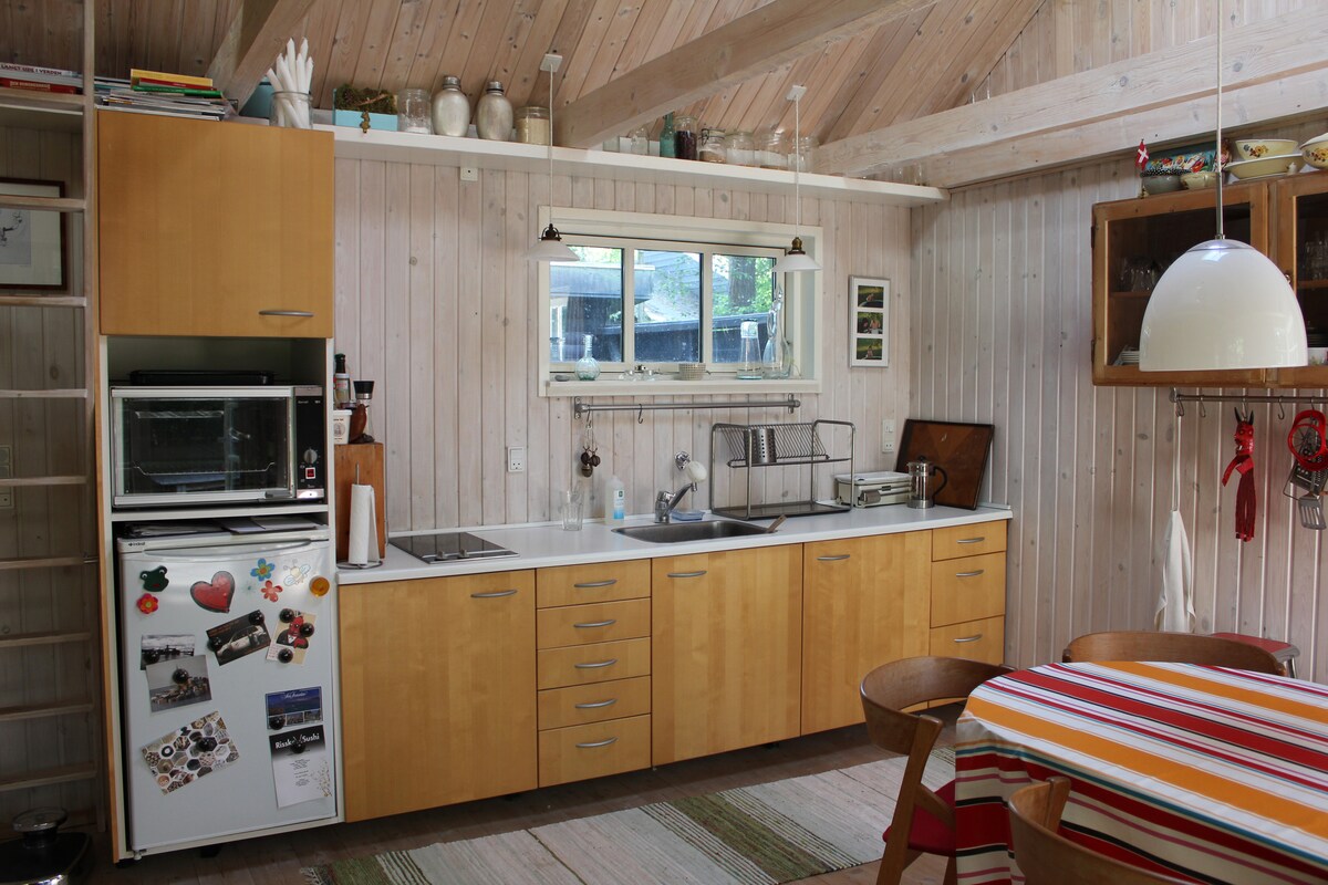 Disfrutarás de esta pequeña casa encantadora y pintoresca. Cerca del bosque y la playa. Casa con dormitorio combinado, cocina y baño. Alojado solo durante los meses de verano, ya que la casa no está aislada. Así que recuerda cualquier ropa de noche, ya que puede hacer un poco de frío por la noche. También acceso a la ducha al aire libre y al pozo de fuego. A 800 m de la playa. El anexo está ubicado en el patio trasero de la casa principal. Un hogar para los amantes de la naturaleza.