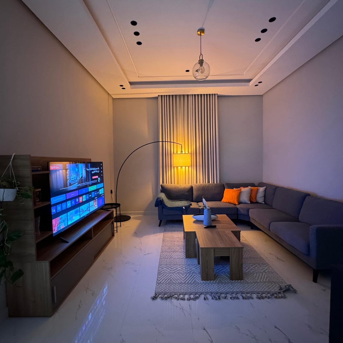Un alojamiento elegante con un toque moderno y colores cálidos, con un dormitorio y un salón con un ambiente cómodo y aire acondicionado silencioso. Incluye suscripción a IPTV, YouTube y Netflix. Ubicado en un lugar animado cerca de todos los sitios y servicios de ocio, lo que lo hace ideal para un alojamiento cómodo y un fácil desplazamiento. 📍 Ubicación: La ubicación del departamento es ideal y está cerca de los lugares más importantes de la ciudad: • A 🛍️ 5 minutos de los centros comerciales Al Salam y Al Andalus. • 🏥 Cerca del Hospital East Jeddah y Sulaiman Al Habib • 🚆 Cerca de la estación de tren Al-Haramain • A 🛫 15 minutos del aeropuerto • A 🌊 15 minutos de la Corniche • A 🏫 5 minutos de la Universidad Rey Abdulaziz