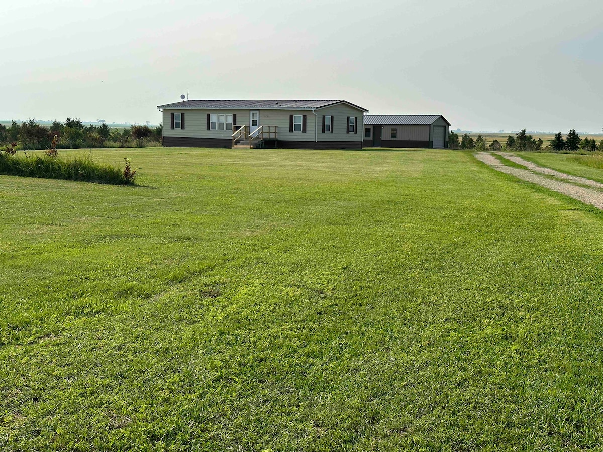 Relax with the whole family or large group of friends at this spacious place. Enjoy time in nature, fresh air, and fun both indoors and outdoors at this peaceful house. It’s centrally located—15 miles east of Faulkton and 25 miles northwest of Redfield and right off of Faulk County highway 10 (paved road). Heated garage for social activities or kennel space for our four-legged friends.