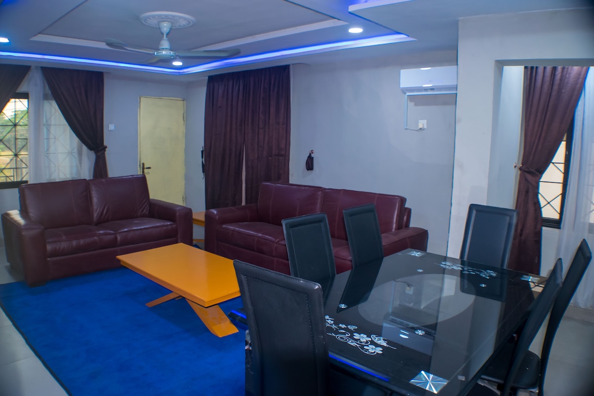 Enjoy a luxurious, spacious, and affordable retreat in this stunning block of studio and 2-bedroom apartments. Located in a quiet and safe neighbourhood, these apartments are ideal for solo travellers or groups who want to enjoy the convenience and comfort of a home away from home. Each apartment features a king-sized bed, a sofa, a kitchenette, a bathroom and fully equipped with modern amenities including cable TV, air conditioning and an uninterrupted supply of electricity.