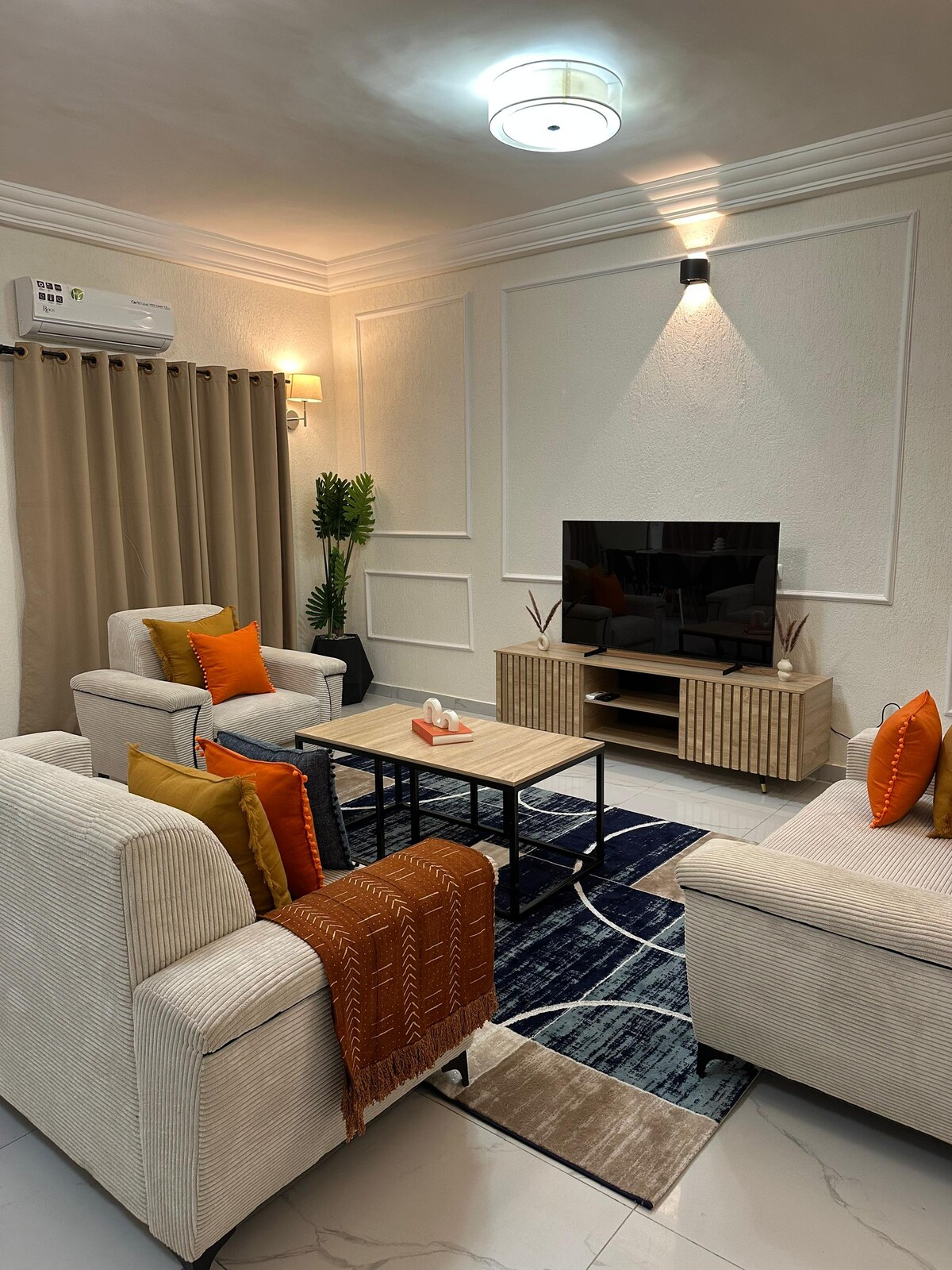 Cet appart élégant et confortable avec vue panoramique sur la ville est au cœur de Cotonou prêt du CEG houeyiho, à 8min de la plage et 10 de l’aéroport. -Toutes les pièces sont climatisées -Cuisine avec tous les équipements modernes -Tv smart et système hifi au salon pour vos détentes **Inclu dans le prix: -Wifi haut debit -Groupe électrogène de relais pour la nuit -Agent de sécurité présent 24h/24 -Tank d’eau en cas de coupure par la Soneb -Agents de nettoyage 1 fois par semaines sur demande.