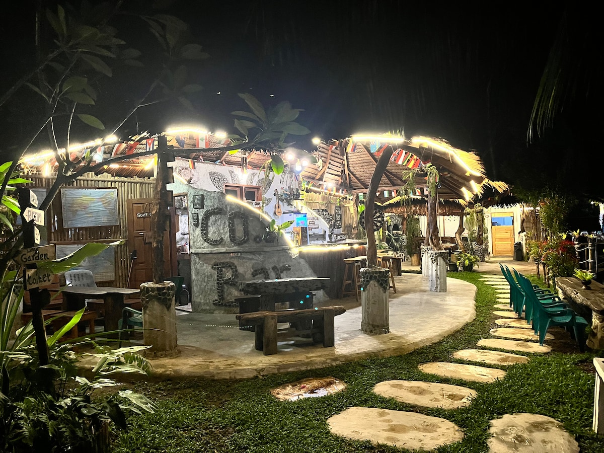 Hermosa casa de 2 dormitorios en hermosos jardines a pocos pasos de la playa de surf/kitesurf y el pueblo local. La casa tiene dos dormitorios. El primer dormitorio tiene 1 cama individual. El otro dormitorio tiene dos camas individuales que se pueden unir como dobles. Consulta otros anuncios para reservar una habitación en la casa. Hay una cocina con cocina de gas y utensilios. Hay un baño contiguo de estilo occidental. El dormitorio con dos camas individuales tiene aire acondicionado y el dormitorio individual tiene ventilador.