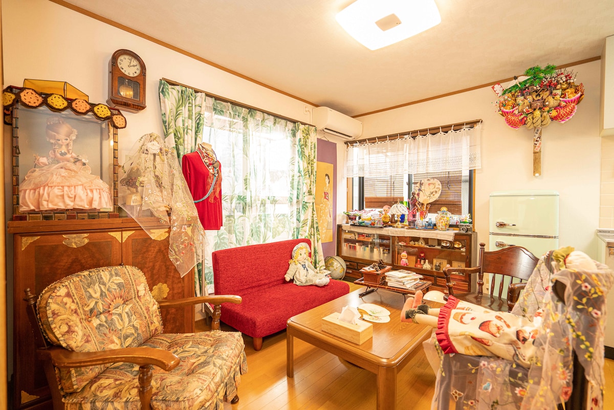 Just a 2-minute walk from the station, Palette House is a cozy and stylish retreat perfect for exploring Tokyo. The industrial-style kitchen includes an island bar, full cookware, wine glasses, and a water dispenser—ideal for cooking and evening drinks. The living room features natural driftwood décor and a comfy sofa, while the Japanese-modern bedroom offers a refined, relaxing space. With thoughtful amenities and warm design, it’s a perfect base for couples and families.