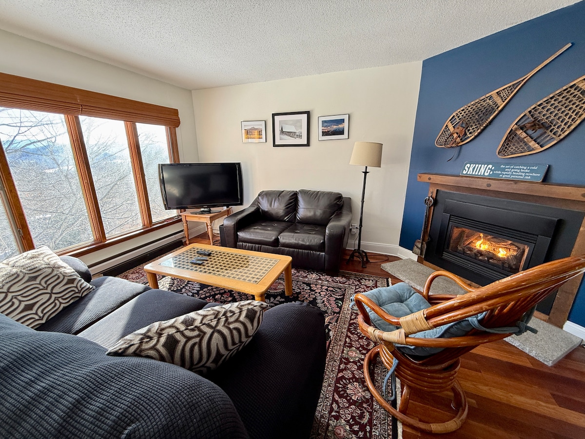 Amplio apartamento de tres dormitorios, en dos niveles, en la montaña en Sugarbush Village. Espacio suficiente para que la familia se relaje y disfrute. Acogedora y luminosa casa familiar con vistas alpinas y terraza ampliada. No es necesario conducir... toma el servicio de transporte de cinco minutos por la colina hasta el albergue base.