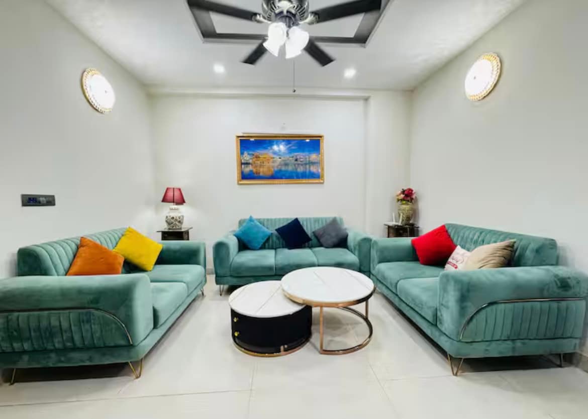 ❌Not for Parties❌ Modern 3BHK • Spacious Living Room • 3 Comfortable Bedrooms • Fully Equipped Kitchen • Clean, Modern Bathrooms ⭐ THE AMENITIES Guests get access to Shared Swimming pool, gym , theatre , games , and more amenities are there like table tennis , badminton , carrom , pool table , air hockey 🗺️ LOCATION Located near the Chd-Delhi highway, the property is: • 10–15 mins from Chandigarh Airport • Close to malls • Wedding guests attending functions in Tri-city