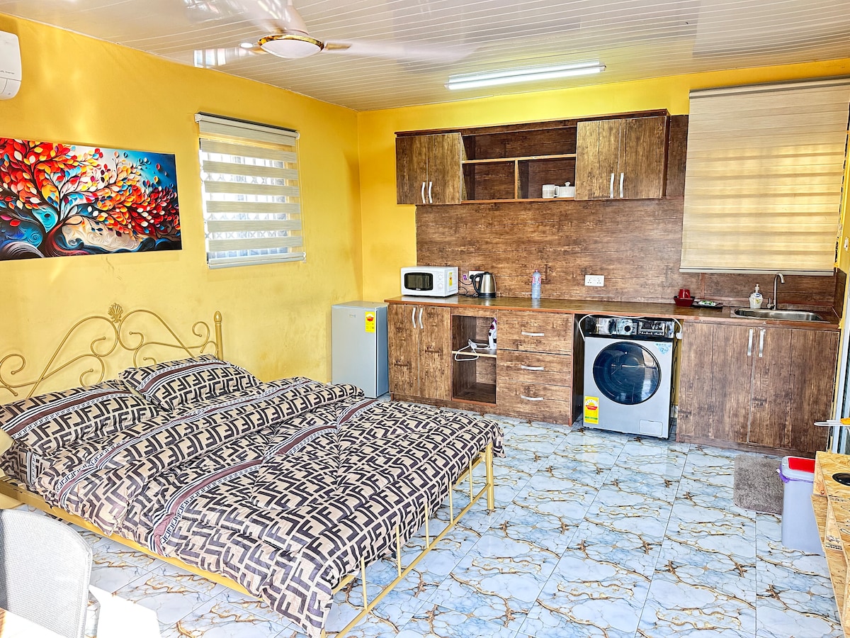 Bienvenido a nuestro hermoso apartamento tipo estudio, ubicado en el corazón de East Legon, uno de los barrios más vibrantes y exclusivos de Accra. Tanto si estás en la ciudad por negocios como por placer, este acogedor y elegante espacio ofrece todo lo que necesitas para disfrutar de una estancia cómoda e inolvidable. Relájate y desconecta en tu propio balcón privado, que ofrece un espacio tranquilo para disfrutar del aire fresco y de los alrededores.