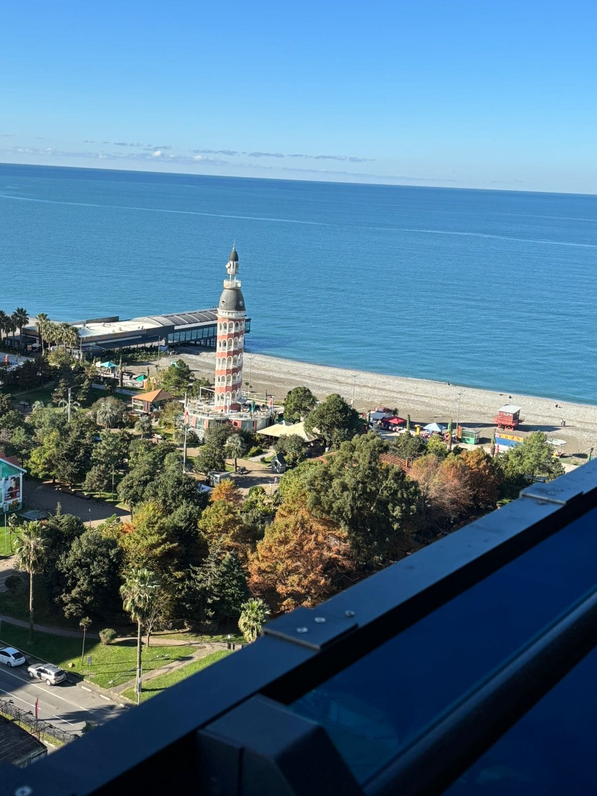 Apartamento con vista panorámica de 180 grados de Batumi. Puedes ver el amanecer desde tu dormitorio por la mañana y la puesta de sol por la noche. Desde el balcón hay una vista chic del estadio de fútbol Arena Batumi. Centro comercial a 30 metros (supermercado, farmacia, etc.). El mar está a pocos minutos a pie. Apartamento con una vista panorámica de 180 grados de Batumi. Desde el balcón hay una vista chic del estadio de fútbol Arena Batumi. Centro comercial a 30 metros (supermercado, farmacia, etc.). El mar está a cinco minutos a pie.