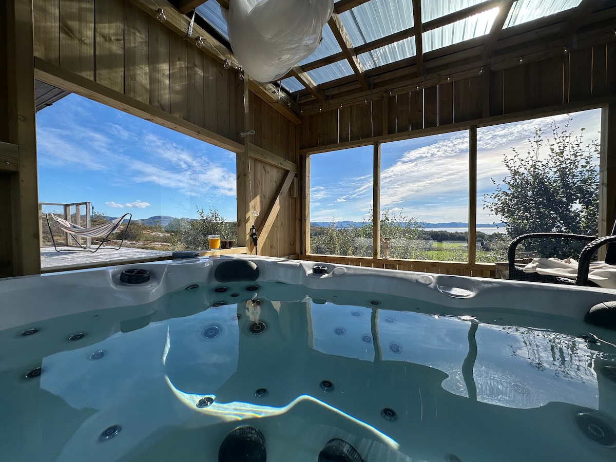Koselig hytte med sjøutsikt & jacuzzi på Linesøya