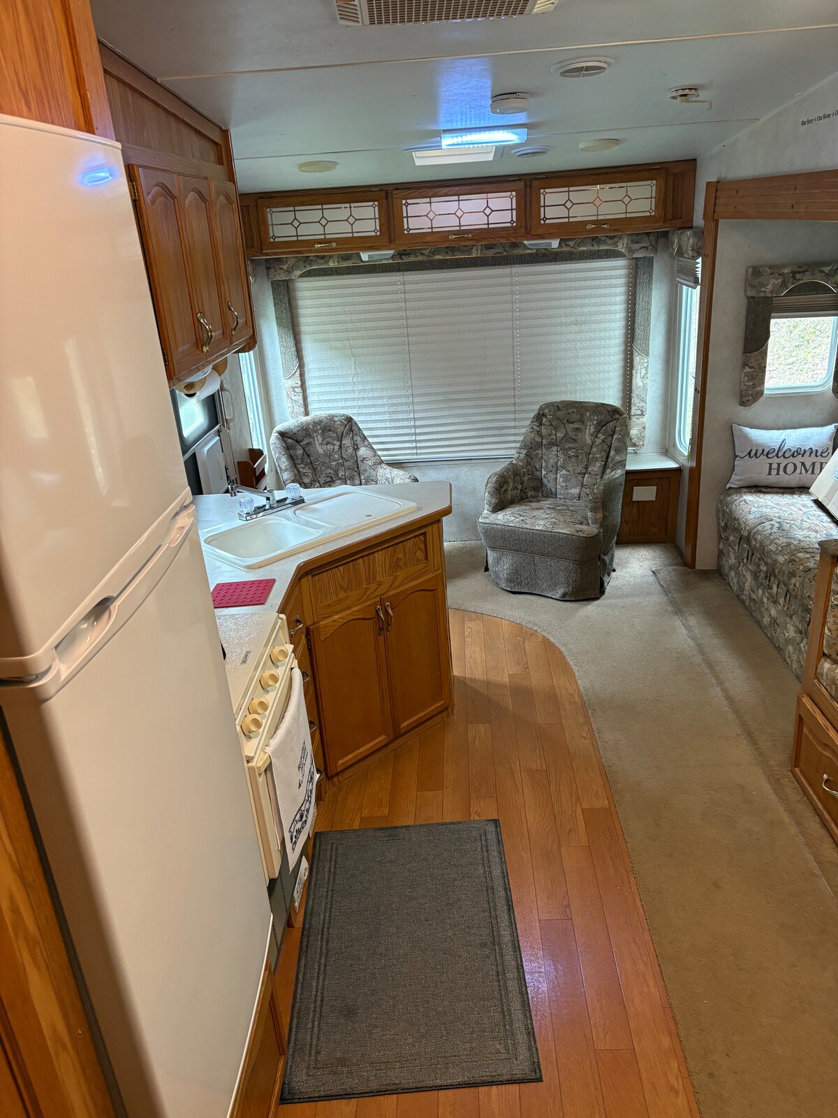 Casa rodante de quinta rueda en sitio permanente.