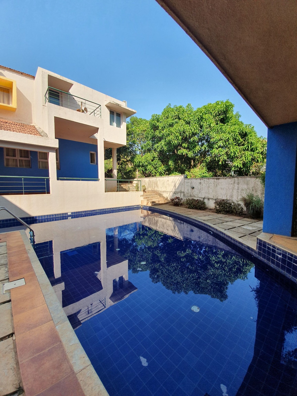 Navin 's Vista Azul es una propiedad de estilo griego moderno de 8073 pies cuadrados con 4 suites ubicada en medio de la exuberante vegetación y la vida local del pueblo en el sur de Goa. Esto te permite experimentar la verdadera esencia de la cultura goana junto con privacidad y otros servicios como una piscina y una zona de reunión al aire libre. Situada en Nuvem, en el sur de Goa, a solo 10 minutos de la playa y a 15 minutos de la ciudad principal, esta propiedad es una mezcla perfecta de una estancia tranquila pero atractiva.