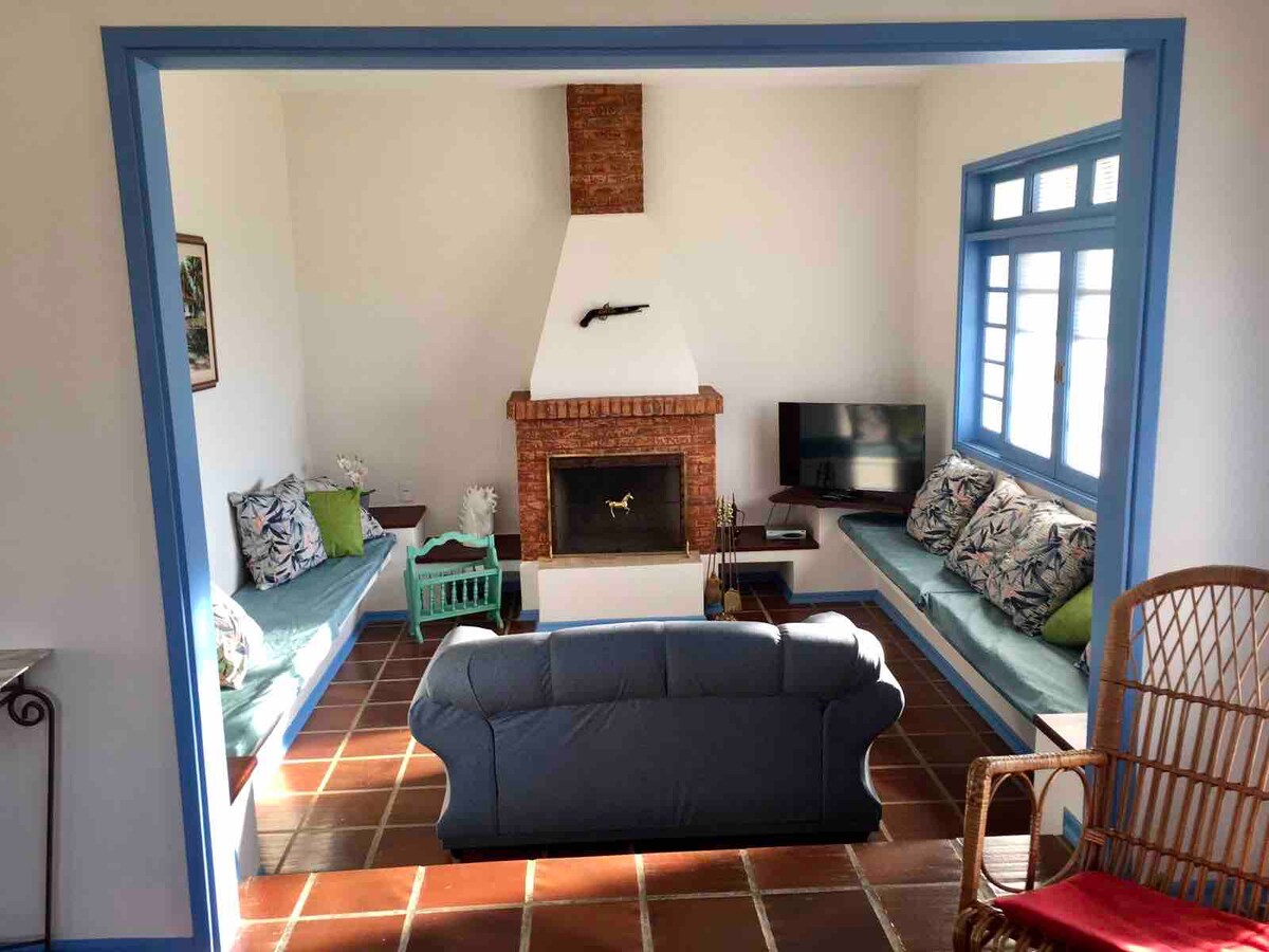 Casa con 3 dormitorios, uno con baño privado, baño social y toilet. Cocina americana, sala de chimenea, sala de estar, comedor, parrilla, horno de pizza, balcón, espacio de meditación y TV por cable. Condominio cerrado con mucha naturaleza, un kiosko, privacidad y seguridad. Acceso a Internet a través de wifi (15 MB) para la oficina en casa. La limpieza se realizará dentro del protocolo de limpieza COVID-19.