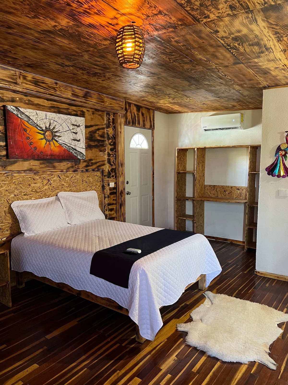 Habitacion #C privada en un espacio centrico, dentro del pueblo magico de Calvillo, Aguascalientes. Cuenta con balcón a la calle, 1 cama king size, 1 sofá cama individual, baño completo, aire acondicionado, WiFi, Smart TV, y acceso a todas las áreas comunes y a la cocina completamente equipada en planta baja.