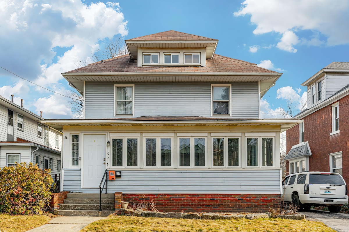 Enjoy a comfortable experience at this centrally-located home 1 block away from the strip in Highland Square. Central air, 2 bedrooms with brand new queen beds. Large kitchen with dishwasher. Netflix & Prime Video on tv's. Comfortable leather couches, front and back deck, and fire pit. Being 5 minutes from Downtown Akron, 35 minutes from Downtown Cleveland, and 10 minutes from Cuyahoga Valley National Park, there is a lot of nightlife, hiking and biking in the area. All are welcome!