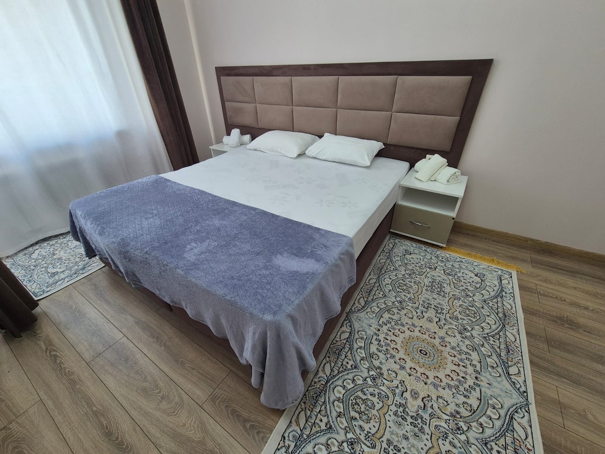 Disfruta de una experiencia elegante en el corazón de la ciudad con vistas panorámicas al mar. Apartamentos de lujo con el estilo del minimalismo moderno (departamentos negros) en la primera línea en el centro de la ciudad en el terraplén central,en la clásica galería de Aktau construida en los años 90 hay un ascensor. Cerca hay tiendas, restaurantes, cafeterías, centros comerciales,terraplenes, etc. El apartamento cuenta con todo lo que necesitas para una estancia cómoda. Comedor único y dormitorio con vista al mar, cama tamaño king Depósito de 10 000 tenge