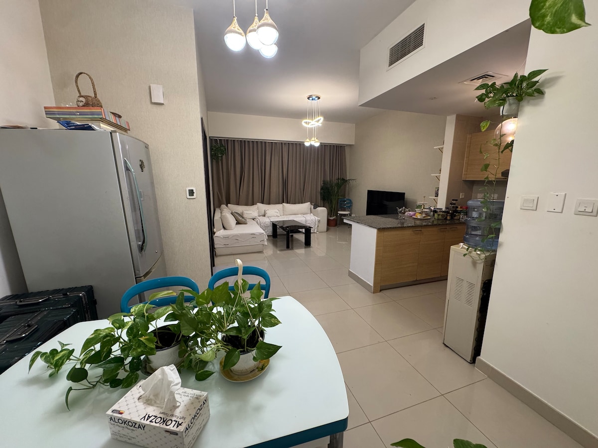 Our home is 1 bedroom apartment. It is located in the heart of yas island few steps to Theme parks.Decorated with Bohemian style . Located on the highest floor with balcony . 7 mins to Yas mall . 7 mins to Ferrari world . 10 mins to Yas Marina circuit. 10 mins to Yas bay & Etihad Arena . Balcony view on Yas Sea World , with big patio balcony & seating . Free Internet ,Netflix, coffee, tea , Soda and water Free Balloons for special occasions. 🎈
