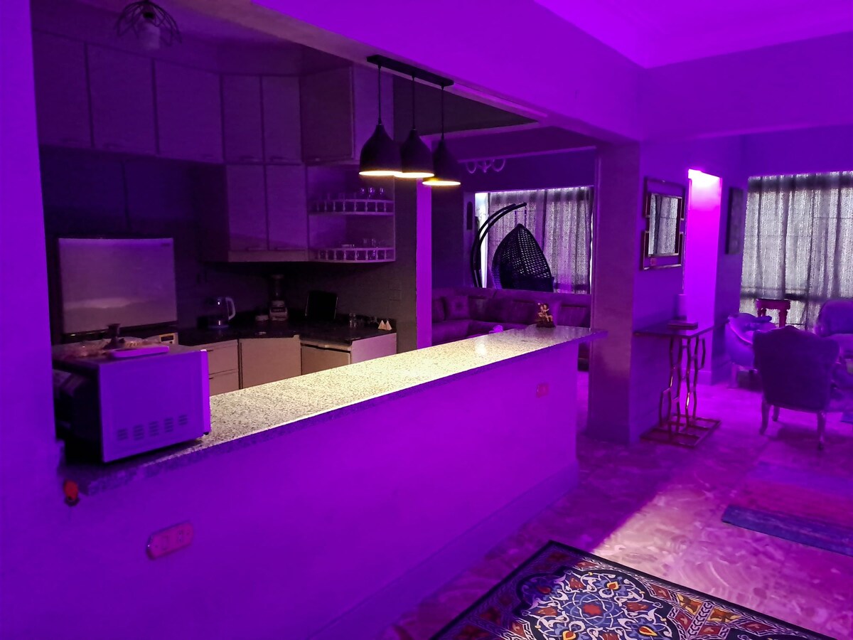 Este lugar especial está cerca de todo, a 5 minutos a pie de la estación de metro de Guiza, mercado de alimentos, todo tipo de tiendas que necesitas abajo, pescado, carne, pollo, verduras y patatas fritas, aparcamiento, gimnasio en el primer piso, supermercado, a 5 minutos de la estación de tren de Guiza, a 1 km de la Universidad de El Cairo, transporte público 24 horas, fácil de conseguir un Uber desde casa o cap, a 6 km de las pirámides y el nuevo gran museo egipcio, a 5 minutos de la carretera de circunvalación. NO SE PERMITEN GRUPOS MIXTOS.