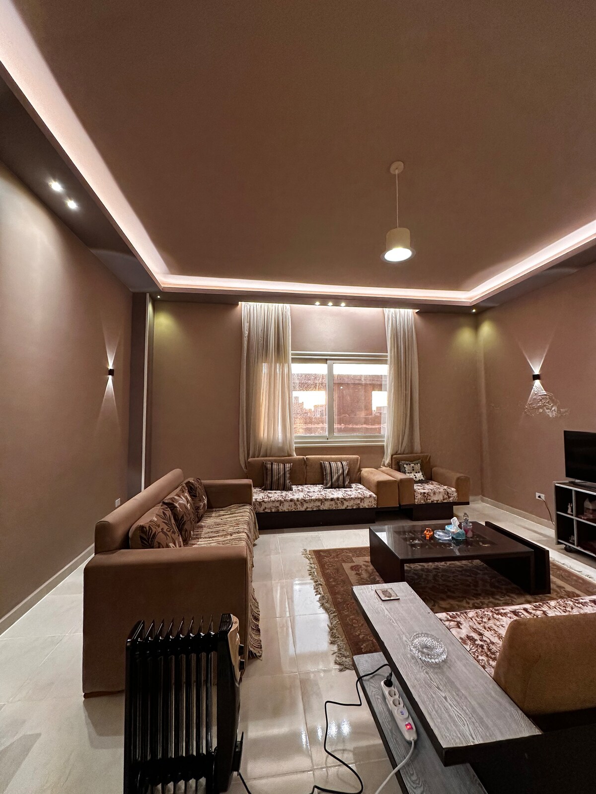 Escapa del bullicio de la ciudad y relájate en este tranquilo estudio de planta abierta de 90 metros cuadrados. Disfruta de una amplia sala de estar, una cómoda cama tamaño king y una cocina totalmente equipada inigualable. Ubicación: a solo 5 minutos en coche de AUC, The Spot Mall y Point 90 Mall, a 25 minutos del aeropuerto de El Cairo. Envíame un mensaje para obtener más información o reserva tu estancia al instante. Puedo ayudarte a planificar tu viaje, recomendarte auténticos restaurantes egipcios o guiarte a las joyas ocultas de la ciudad.