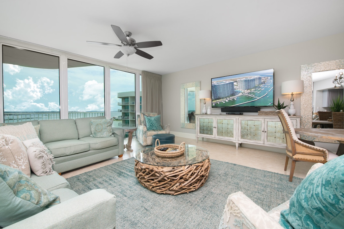 ¡Disfruta de las mejores vistas de Orange Beach en Grand Pointe 314! ¡Este es un alquiler totalmente nuevo! ¡Nuestro apartamento de 4 dormitorios y 4,5 baños completamente renovado y decorado profesionalmente es perfecto para tu familia y amigos! Características principales: - A poca distancia a pie de restaurantes galardonados, puerto deportivo, spa, tiendas y entretenimiento. - Balcón de gran tamaño con vistas panorámicas. - Grandes piscinas exteriores e interiores con vistas. - Playa sin aglomeraciones. - Bañeras de hidromasaje, vapor, sauna y sala de ejercicios. - ¡Carro de playa, tienda de campaña, juguetes y mucho más incluidos!