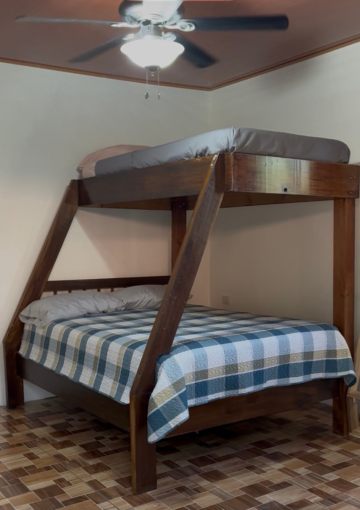 Apartamento privado con entrada independiente, equipado con Aire acondicionado, cocina completa, refrigerador, dos camas dobles con colchones confortables, cuna para bebé (opcional), silla para bebé (opcional), baño con agua caliente, horno microondas, espacioso para venir en familia, cuenta con áreas verdes para jugar con los niños y/o mascotas, contamos con lavadora de ropa en la misma propiedad. El parqueo es bajo techo Tenemos huerto y frutos que pueden disfrutar sin costo adicional