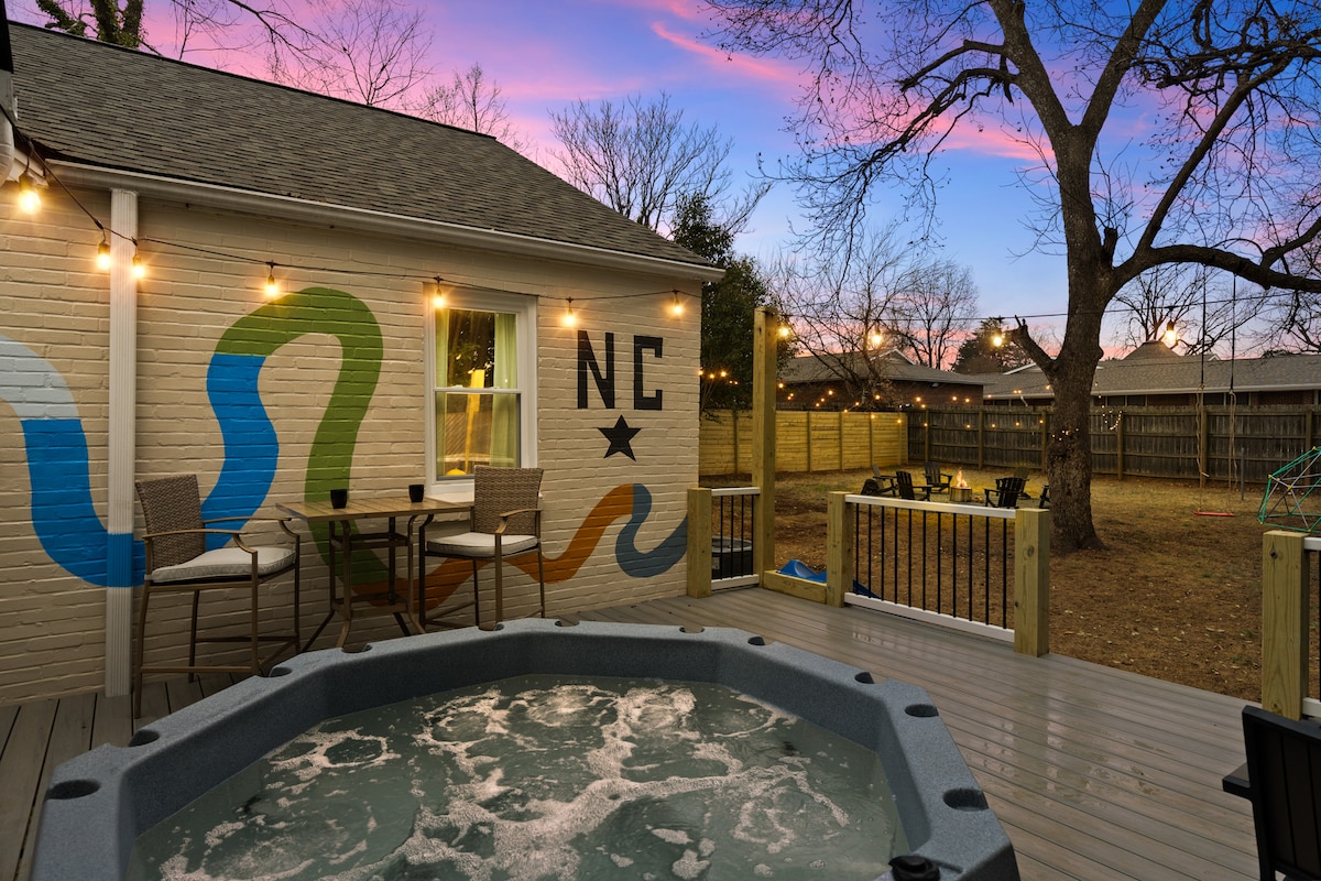 A poca distancia a pie de cervecerías, restaurantes y tiendas de Graham. Circa 1920, cuenta con paredes de ladrillo originales expuestas, jacuzzi grande, mesa de billar grande/mesa de comedor, cocina totalmente equipada y 4 espacios para dormir tamaño queen (1 colchón inflable, 1 sillón puff CordaRoy). Los amplios dormitorios, las sábanas limpias y las grandes ventanas hacen que el espacio sea luminoso y espacioso. A pocos minutos de Elon/Burlington/bodegas y cervecerías. A 28 millas del parque acuático WetNWild en GSO. El patio exterior privado cuenta con un horno de pizza de piedra personalizado/chimenea y un nuevo jacuzzi.
