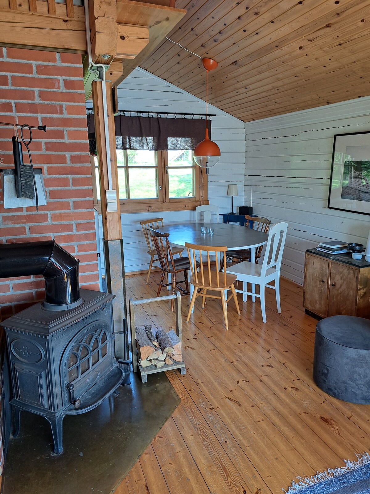 Njut av ett modernt fritidsboende i rofylld naturmiljö vid vattnet, ett välutrustat kök, dusch och toalett. Altan och fönster mot vattnet. En vedeldad bastu och brygga finns vid vattnet. Möjlighet att lägga till med båt. 6 km till Mariehamn. En granne finns bredvid. Bra att veta: Det finns basvaror i kylskåpet så som ketchup, senap och soja som ni är välkomna att använda. OBS: Det ingår inte sängkläder och handdukar. Bastubad kostar 5 €/vuxen Kallt vatten till bastun hämtas i huset