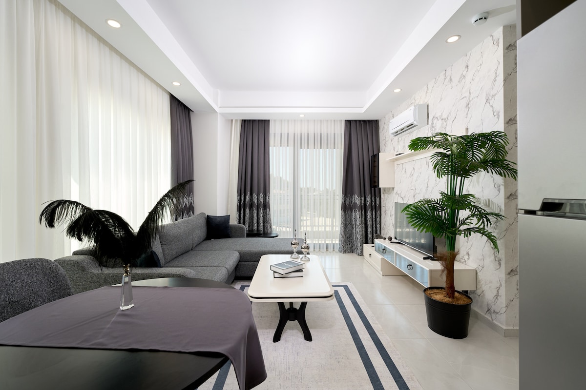 Encantador departamento de 1 habitación frente a la playa Dpto. Lexus Residence (70 m2) con acceso a la playa y vistas al mar. Todas las estaciones llenas de actividades con un gran balcón para disfrutar de tu café y comidas matutinas. Check-in autónomo con llave inteligente A 7 km del centro y 35 km del aeropuerto de Gazipasa. A 130 km del aeropuerto de Antalya Según la temporada, piscina grande al aire libre y cubierta, gimnasio, tobogán acuático, cancha de tenis, sala de juegos, sala de cine, sala de juegos para niños. Sala de fiestas, (el baño turco y la sauna están abiertos los fines de semana) área de parrilla y seguridad las 24 horas