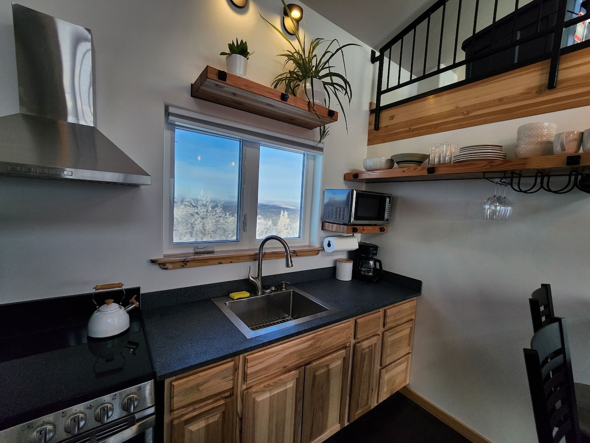 Esta cabaña única ofrece las vistas de 270° más espectaculares tanto para el amanecer, como para el atardecer y para ver auroras boreales. Situada en la cima del popular Ester Dome, esta cabaña única tiene vistas a todo Fairbanks y sus alrededores. A solo 11 millas del aeropuerto, hay increíbles rutas de senderismo/ciclismo cerca. Con un excedente de ventanas, se destacan la impresionante tundra/montañas de Alaska. Dentro de esta cabaña construida a medida, hay una acogedora sala de estar y una cocina/baño totalmente funcional.