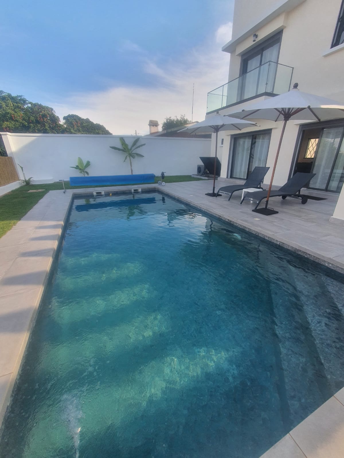 Este alojamiento moderno, tranquilo y seguro le garantiza una estancia agradable, ya sea que esté en familia, entre amigos, en pareja, entre colegas. Podrá admirar, a través de sus grandes ventanales, las magníficas palmeras y otras plantas verdes que sin duda harán el placer de sus ojos. Un jacuzzi le ofrecerá un momento de relajación. Una gran cocina moderna y totalmente equipada estará a su disposición si tiene ganas de preparar buenos platos para usted.