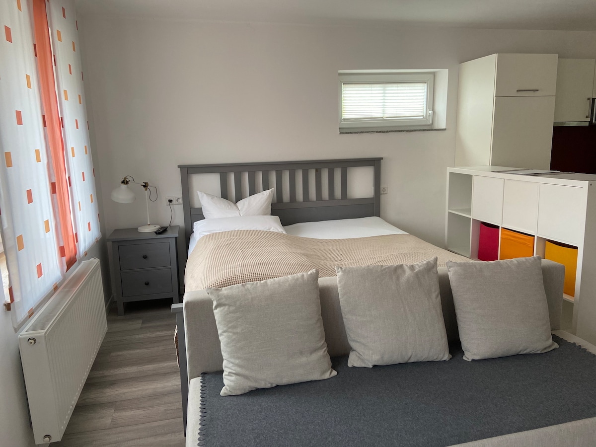 Our freshly renovated 50 sqm flat in Dinkelscherben offers modern comfort for families, couples, business travelers, and nature lovers. It features a bedroom, bathroom, hallway, and living area, plus coffee machine, kettle, microwave, projector, hairdryer, iron and Wi-Fi. Sleeps up to 5, baby cot on request, pets welcome. Blackout curtains, insect screens, and a 15-minute walk to the train station. Our home is cozy and welcoming – just as it was designed for families with children and pets.