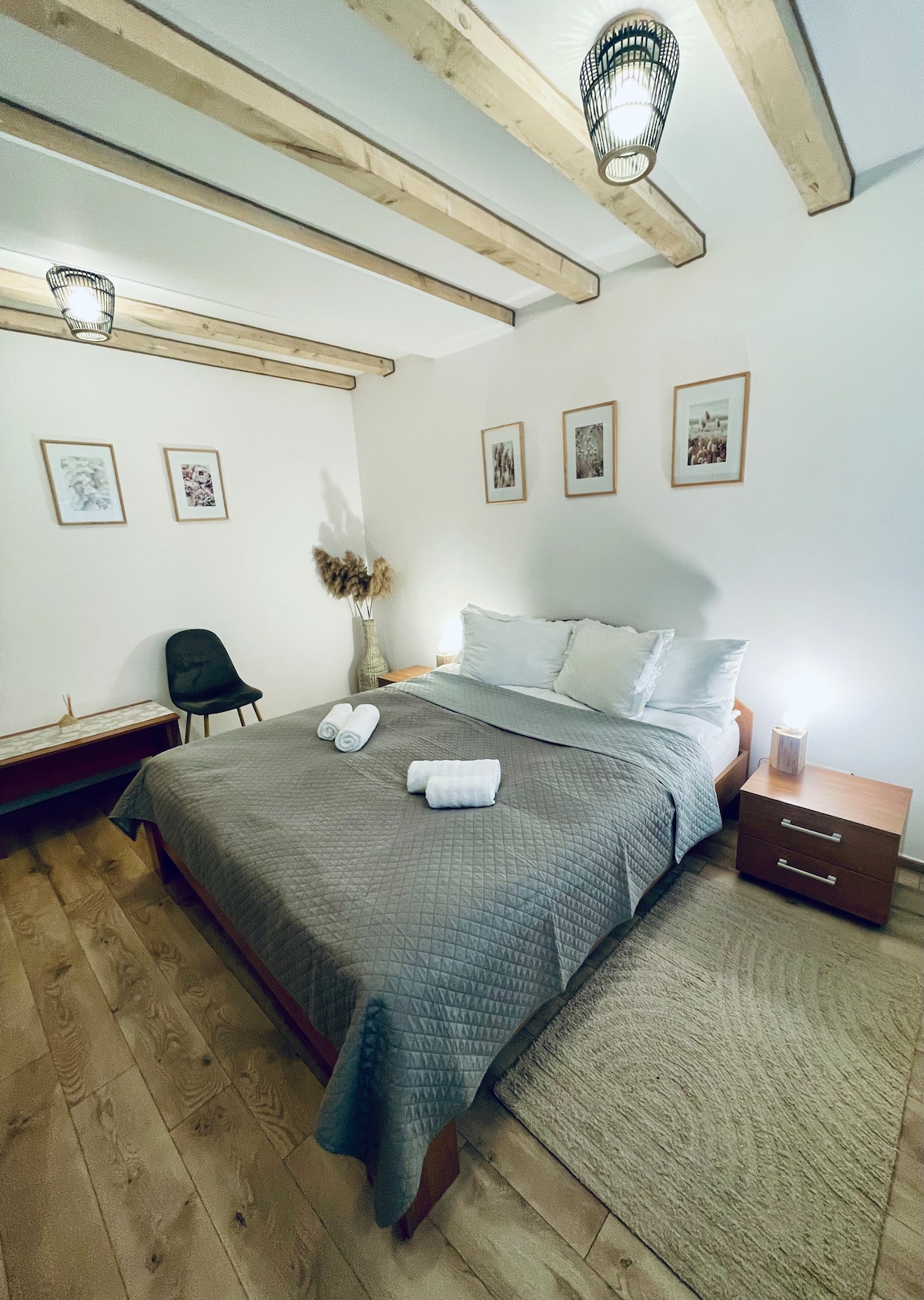 Nuestro departamento está a pocos pasos de Piata Mare (Grand Square) en Sibiu. Ubicado en un edificio histórico de 200 años de antigüedad, cuenta con un acogedor dormitorio, sala de estar con TV inteligente (Netflix), wifi rápido y cocina totalmente equipada con cafetera, estufa y lavadora. La calefacción central mantiene las cosas calientes en invierno y el aire acondicionado está disponible durante el verano. Una pequeña terraza privada agrega encanto adicional, perfecta para relajarse después de un día explorando la ciudad.