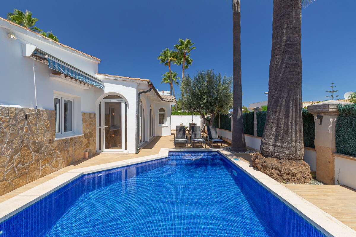 Precioso chalé muy cerca del mar. Situado en una reserva natural, muy tranquilo y muy cerca de los pueblos de Alcudia y Pollensa. Ideal para familias con y sin niños y para personas que disfruten de la isla en bicicleta. Dispone de todo lo necesario para hacer sus vacaciones agradables y cómodas... Aire Acondicionado, Barbacoa, piscina privada en un jardín muy amplio con tumbonas, Wifi, lavavajillas, microondas, plancha, secador y todo lo necesario para hacer su estancia lo más cómodo posible