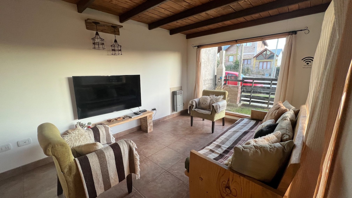 Refugio céntrico y luminoso, ideal para una estadía cómoda y sin vueltas. Renovada con dedicación, la casita ofrece cocina equipada, Wi-Fi 300 MB, Smart TV, ropa blanca de calidad y excelente ducha. Ubicada a pasos de cafés, restaurantes y atractivos como La Trochita y el parque. Estacionamiento seguro en la puerta y check-in ágil. Perfecta para parejas o viajeros solos.