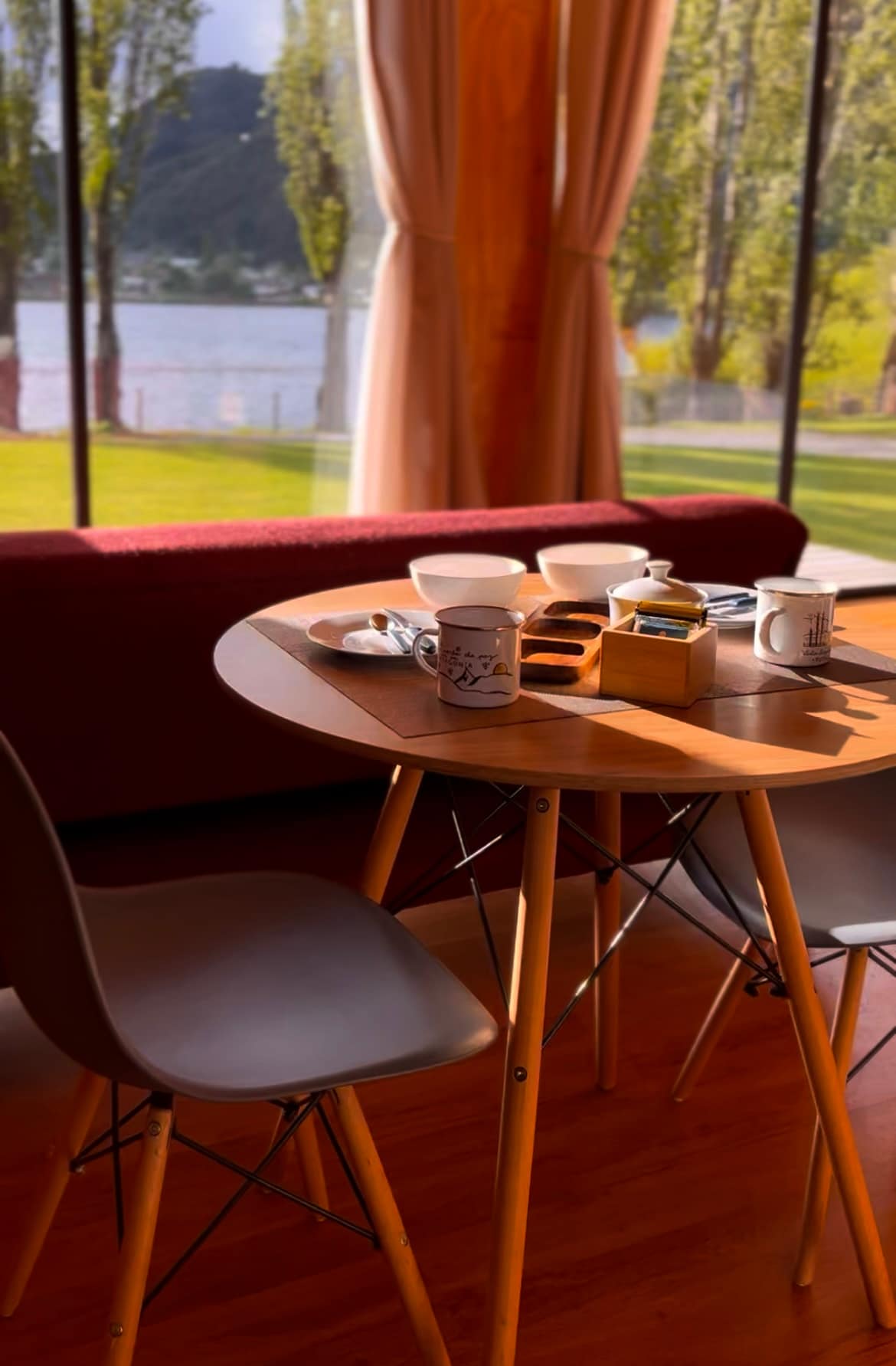 Cabaña en Futaleufú con vista a la Laguna Espejo, Wi-Fi y estacionamiento. Ideal para 2 personas, con calefacción a leña, cocina equipada, frigobar y baño privado con agua caliente. Ubicación privilegiada: frente a la laguna y a pasos del centro del pueblo. Privacidad y tranquilidad La cabaña se encuentra dentro de un terreno privado donde existen otras dos construcciones que no se arriendan a turistas. Esto asegura que disfrutes de un espacio exclusivo y seguro.