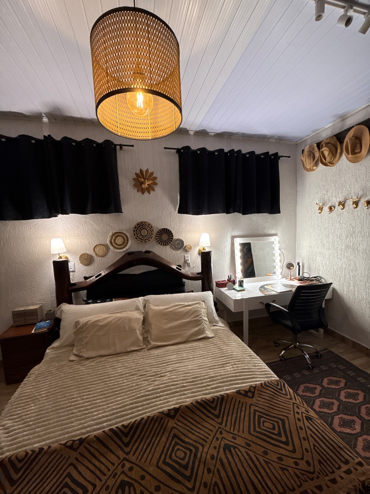 CASA CHARME DO CERRADO es maravillosa, cerca del centro de la ciudad, acogedora y familiar, tiene 3 dormitorios, 1 suite y todos con aire acondicionado, 1 cama doble, otra cama individual, ropa de cama y baño completa, percheros, portaequipajes y cortinas opacas. Sala de estar con smart TV, Sky, Netflix y Wi-Fi; cocina completa; baño; área de ocio con parrilla, freezer, pileta climatizada (solar), cascada y reposeras; zona de hamacas; garaje para 3 autos.