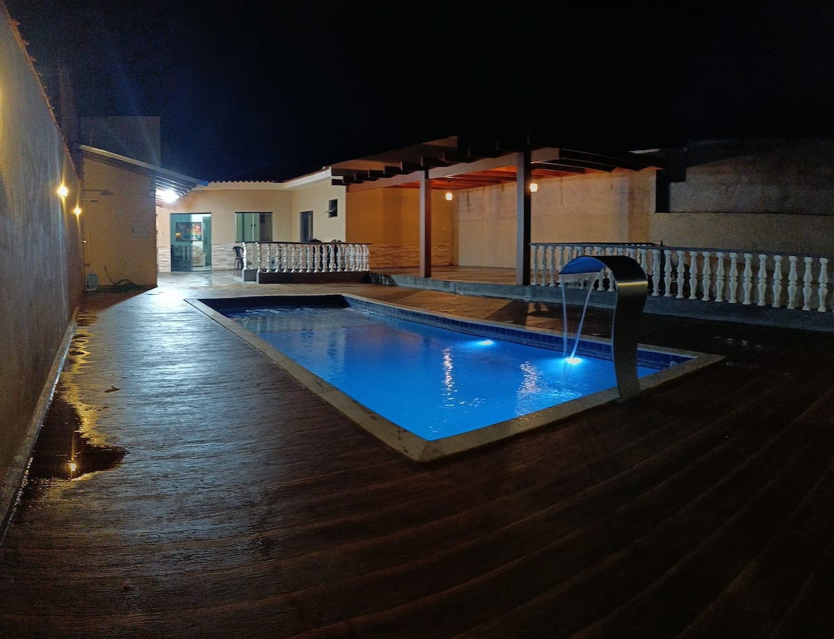 ¡Refugio perfecto con una zona de ocio completa! Disfruta de momentos increíbles con una gran piscina privada, parrilla de ladrillo y espacio cubierto para reuniones. La casa ofrece un entorno cómodo y espacioso, estacionamiento seguro y ubicación tranquila, ideal para familias o amigos. Disfruta de la privacidad, relájate y crea recuerdos inolvidables en este paraíso. ¡Reserva ahora y vive días únicos!
