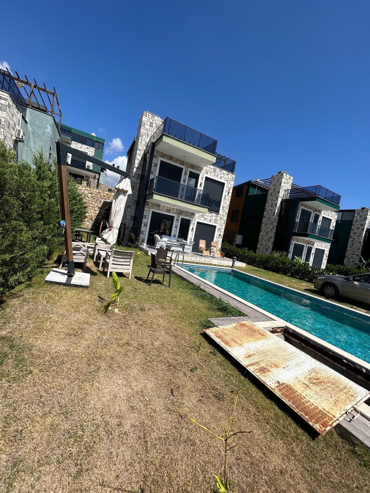 Şehir hayatının karmaşasından uzak, yalnızca dalgaların sesi ve kuş cıvıltılarıyla baş başa kalacağınız eşsiz bir ev. Muhteşem deniz manzaralı, doğayla iç içe villamız; huzuru,konforu ve sadeliği bir arada sunuyor. Güneşi terasınızdan batırabilir, kahvenizi sonsuz maviliklere karşı yudumlayabilirsiniz. Ya da arka bahçemizin ferah atmosferi ve barbeküsüyle ister romantik, ister ailece dingin bir tatil geçirebilirsiniz. Aradığınız huzur, burada siz değerli misafirlerimizi bekliyor.