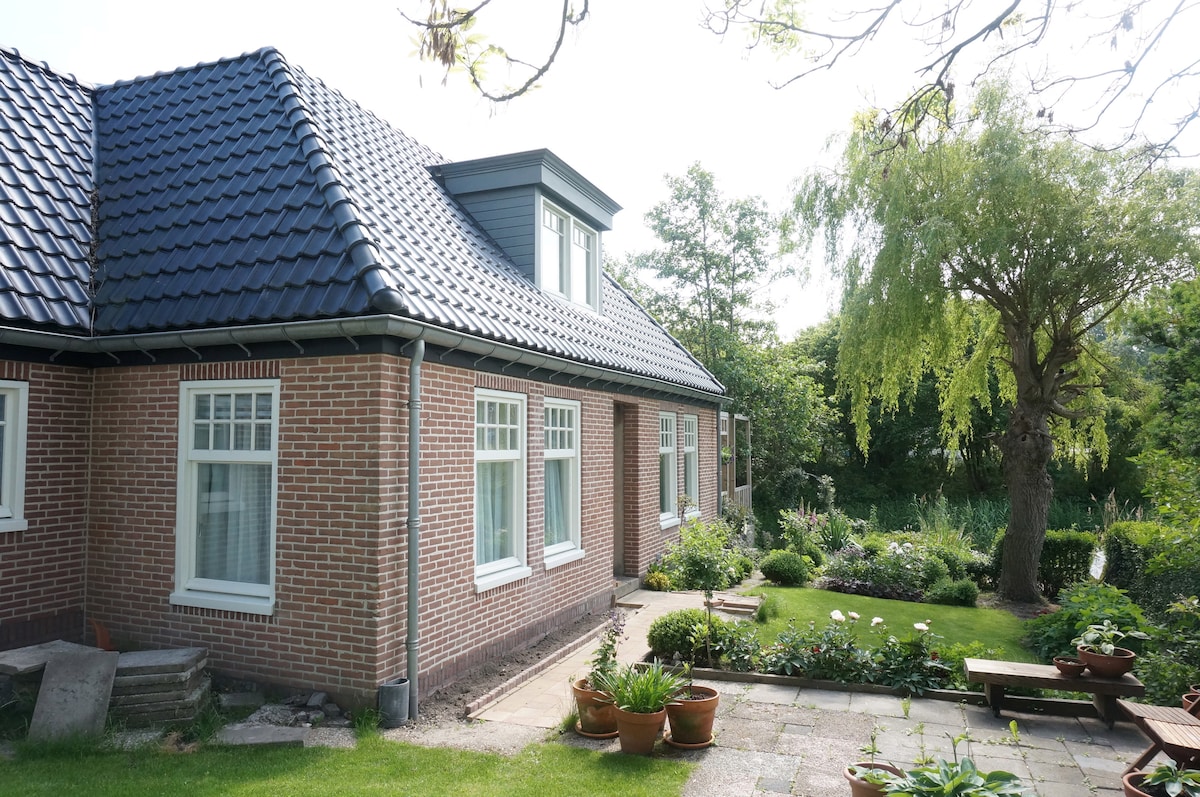Con gran entusiasmo, hemos renovado nuestra antigua mansión y la hemos restaurado a su estado original. En la planta baja hemos creado un apartamento que ahora alquilamos. La casa está situada en un barrio animado a 5 minutos a pie del centro de la ciudad y a 4 minutos a pie de la estación de tren, desde donde se puede llegar a la estación central de Ámsterdam en 34 minutos. El apartamento ha sido recientemente renovado con mucho cuidado y está equipado con todas las comodidades, completamente para uso privado con balcón.
