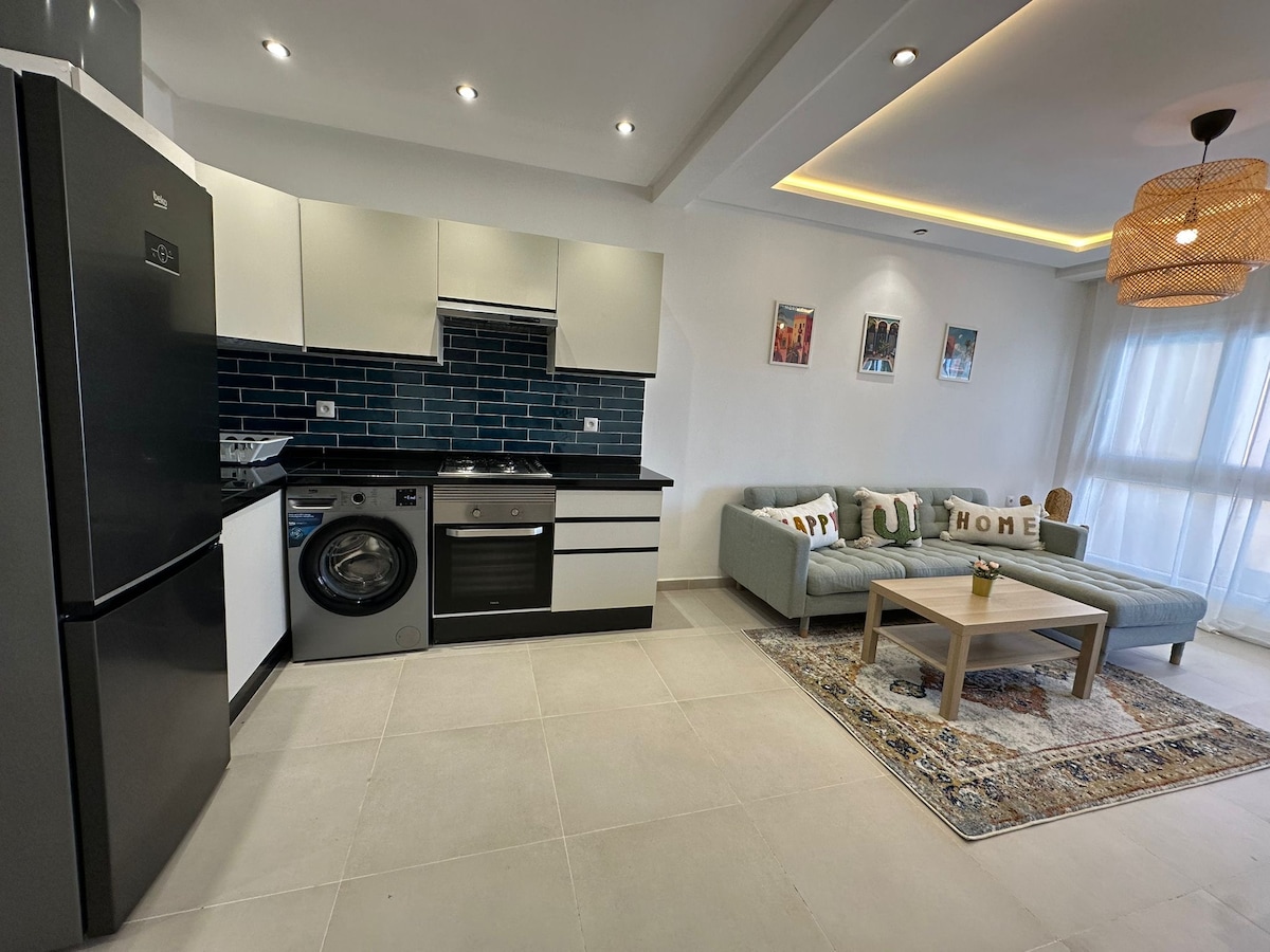 Este departamento encantador y acogedor se encuentra en el corazón de M'diq, lo que lo convierte en el centro perfecto para el norte de Marruecos. Las arenas doradas de M'diq Beach están a solo 3 minutos a pie. Salí a explorar la auténtica vida local, los animados cafés y los restaurantes de mariscos más frescos del puerto. Explorá sin esfuerzo: a minutos de los resorts de lujo de Tamuda Bay y en el centro de Tétouan, Martil, Fnideq y Ceuta. Disfrutá de lo mejor de la región con la máxima comodidad.