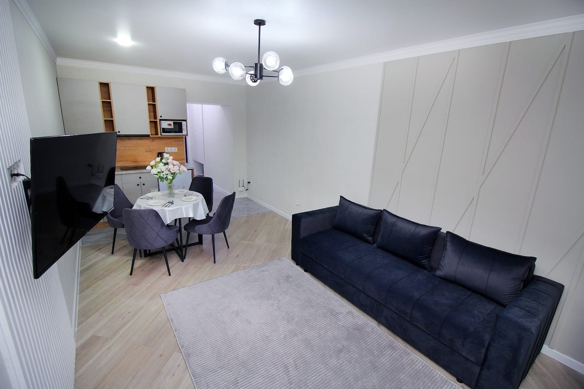 ¡Te damos la bienvenida a tu estancia ideal en Almaty! Disfruta de impresionantes vistas a la montaña y a la ciudad desde tu ventana. - A 7 minutos de la estación de metro. - Cama cómoda y sofá acogedor. - Cocina totalmente equipada. - Baño moderno con toallas y artículos de tocador limpios. - Wifi y SmartTV. ¡El apartamento está en un distrito seguro y animado, cerca de cafeterías, supermercados, farmacias, centros comerciales! Llegada autónoma disponible Siempre listo para ayudarte. No dudes en enviarnos un mensaje en cualquier momento. ¡Relájate, explora y siéntete en casa!