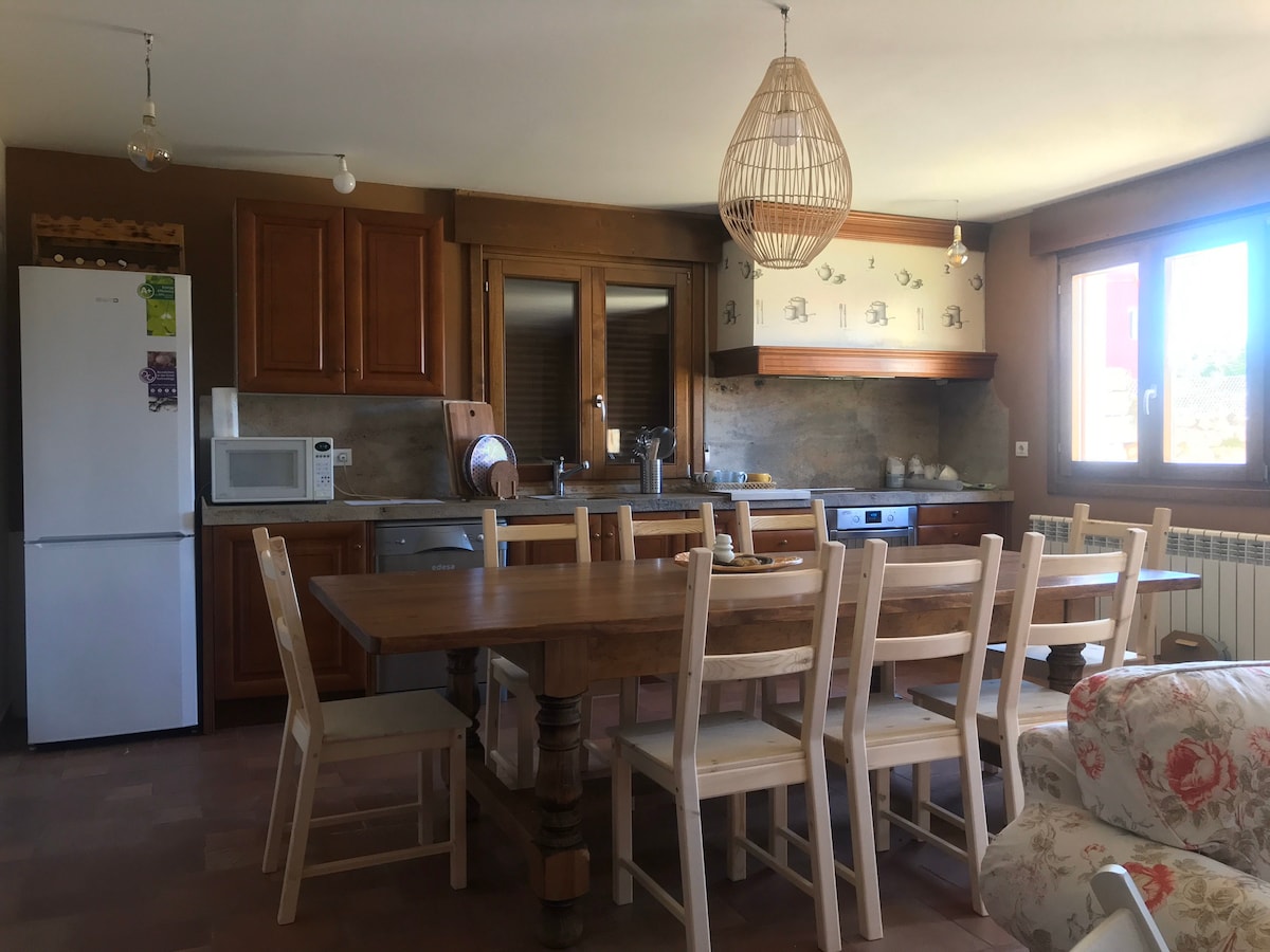 Fabulosa casa de campo en las afueras de Riaza. Recién reformada, cómoda, y con mucho espacio para grupos de amigos o familias. Dispone de 5 habitaciones, 4 baños y un gran salón comedor con cocina abierta totalmente equipada. La casa está rodeada por un amplio jardín con un porche al aire libre, cenador y barbacoa. A solo 15 minutos andando del centro de Riaza, a 10 minutos en coche de La Pinilla y muchas otras actividades de campo y montaña.