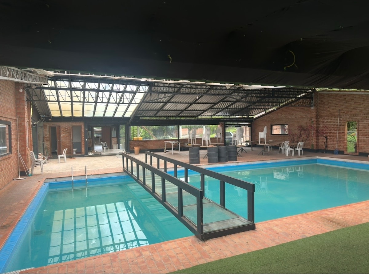 Relaxe e festeje com a família, amigos e/ou empresa nesta grande e tranquila Chácara. São 4 quartos; aconchegante sala de estar com 2 ambientes, amplo sofá retrátil, TV, lareira elétrica; cozinha equipada. Amplo espaço gourmet com churrasqueira acoplado à casa, fogão à lenha, enorme mesa, banheiros de piscina. Piscina coberta com jacuzzi aquecidas e acopladas ao gourmet. Espaço para exercícios. Varanda com wi-fi para quem precisa trabalhar. Há apenas 25 min do Shop. Mueller.