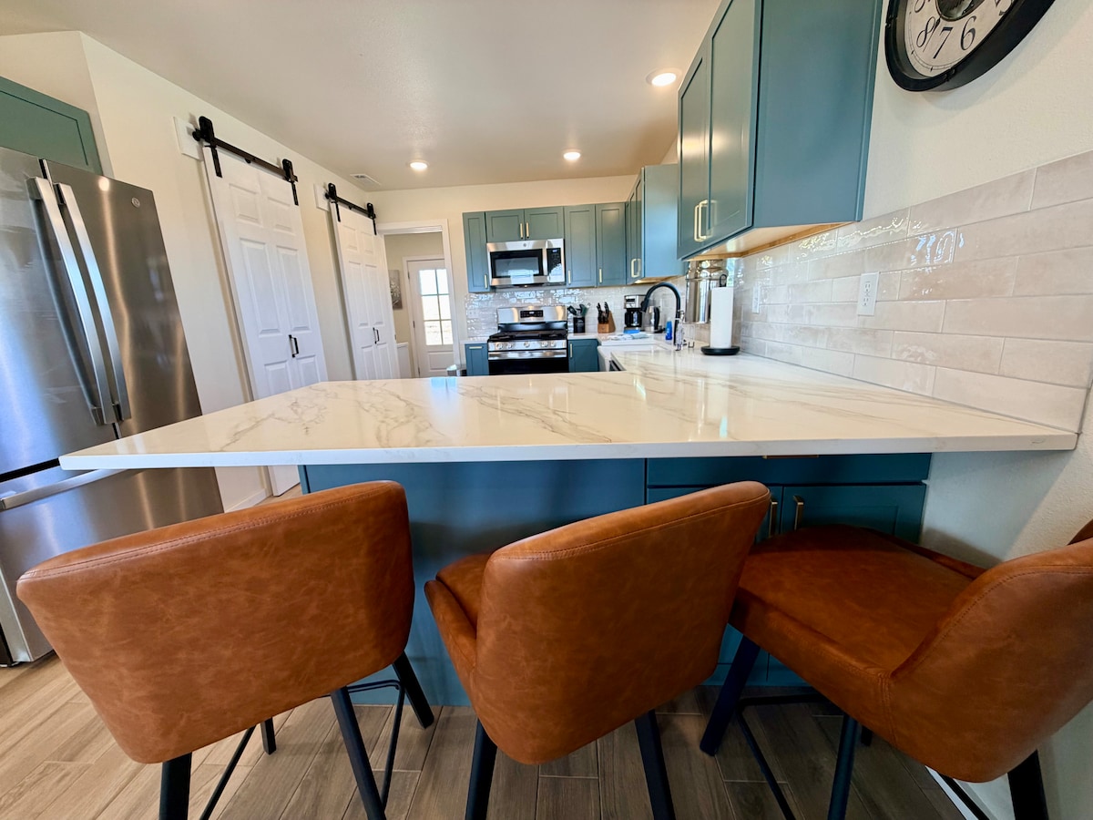 Nueva granja de 2 dormitorios y 2 baños a solo 30 minutos de Branson. Ideal para bicicletas eléctricas o vehículos todoterreno (1 milla por un camino de tierra). Disfruta de la vida silvestre mientras bebes tu café en la cubierta trasera o disfrutas de una puesta de sol desde el porche delantero. Acurrúcate en el sofá de dos plazas reclinable para ver tu película favorita en la televisión inteligente. Haz un viaje al río Buffalo, visita Table Rock Lake o Silver Dollar City y luego vuelve al escondite para relajarte en paz y tranquilidad. Tu cama tamaño king Sleep Number te espera en el dormitorio principal. Muy aislado.