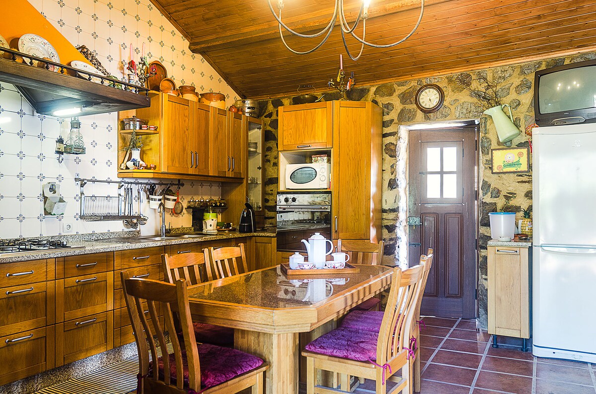 ¡Insertada en la granja Oporto Lemon, esta acogedora casa de piedra es el lugar perfecto para relajarse! La naturaleza está en todas partes, y también está la buena energía animal, ya que tenemos ponis y caballos sueltos, en un espacio de la granja con una valla eléctrica, debidamente señalizada, que no interfiere con la dinámica de la casa. También contamos con un bungalow en la granja: https://airbnb.com/h/retirodoslimoes