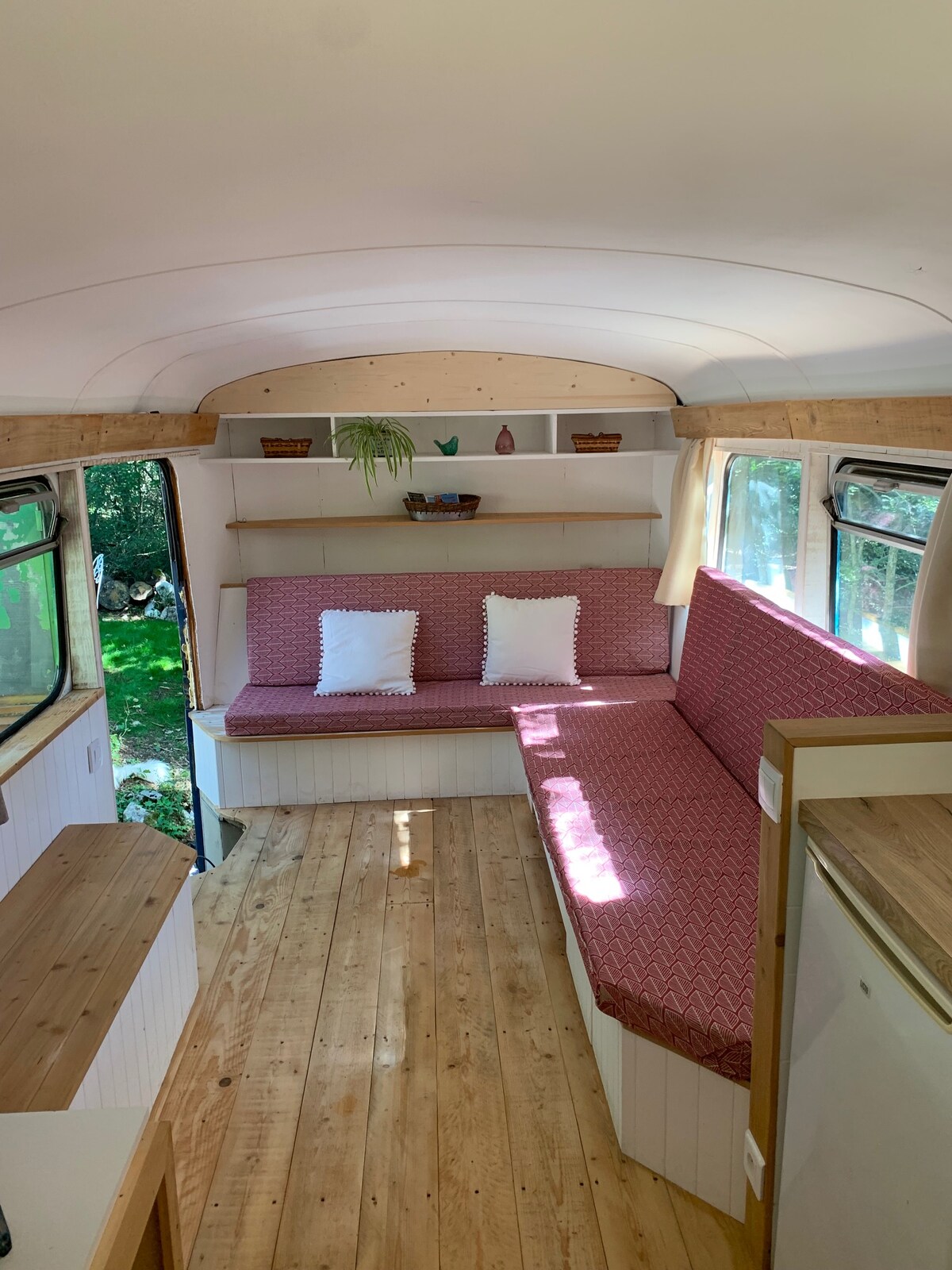 alquiler en alojamiento insólito de un autobús imperial británico de 1957 en plena naturaleza en el parque natural regional del Verdon, cerca del lago de sainte Croix y las gargantas del Verdon. Plaza privada para el estacionamiento de vehículos. Terraza sombreada. Presencia de muchos animales ( perros, gatos, cabras, gallinas). Planta baja salón y cocina equipada, planta superior dormitorio y baño. Ropa de cama y toallas incluidas. Ideal para parejas, hasta 3 personas. Coordenadas GPS: 43.80534800, 6.14345700.