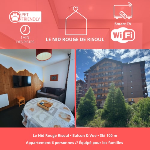 El Nido Rojo Risoul • Balcón y vistas • Esquí a 100 m
