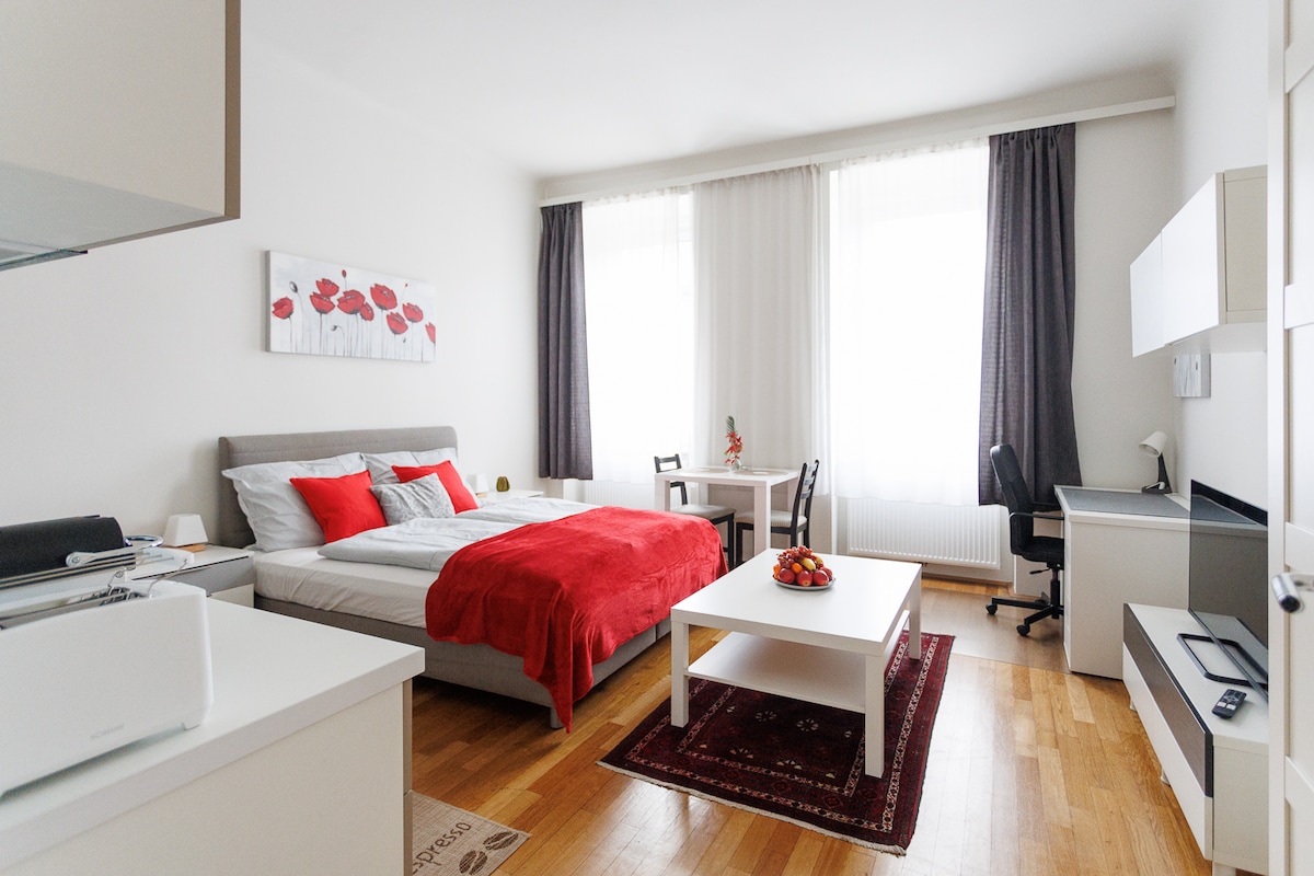 Die gemütlichen Wohnungen sind ca. 35 qm groß und verfügen über ein Schlafzimmer mit einem 160x200 Doppelbett, ein Badezimmer, Küche und WC. Die Apartments befinden sich im 9. Bezirk, gegenüber der U-Bahn Station Nußdorferstraße. Mit der U-Bahn oder der Straßenbahn ist die Innenstadt innerhalb von 15 Minuten zu erreichen. Es handelt sich um eine Apartment-Kategorie, die mehrere Apartments umfasst. Sie buchen 1 Apartment dieser Kategorie.