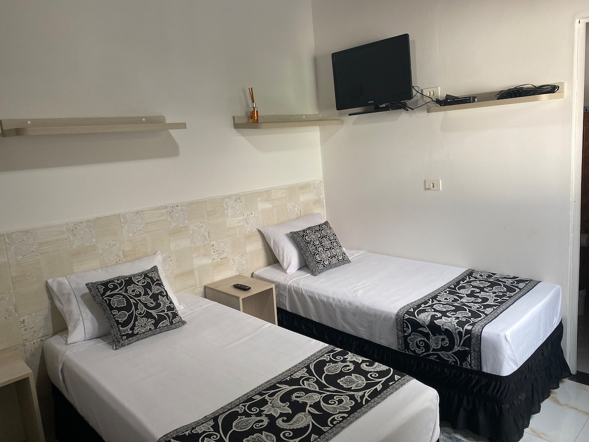 Esta suíte é localizada no piso térreo e tem o melhor custo benefício com cama kingsize, rede para relaxar, ar condicionado, frigobar, Tv a cabo e um excelente café da manhã.