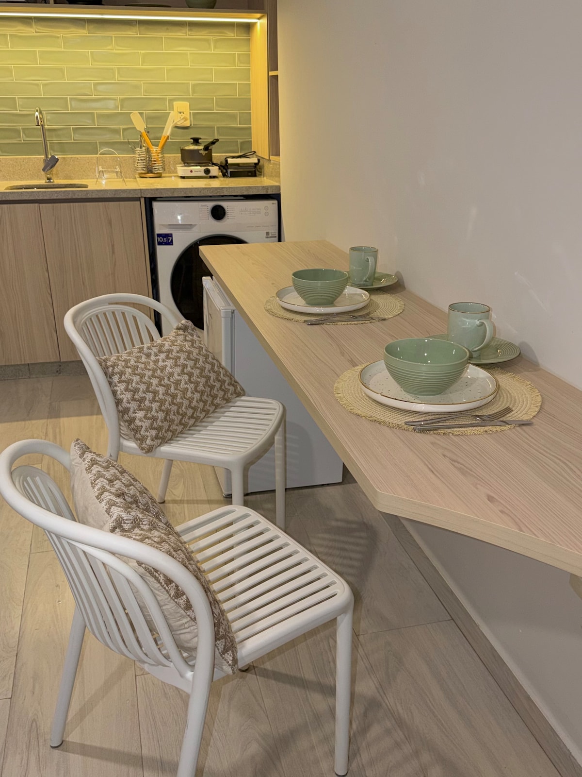 Disfruta de tu espacio en este cómodo y bien ubicado departamento, ideal para hasta 4 personas. Cerca de zonas gastronómicas sobre una de las principales avenidas de la ciudad Av. Julio César Riquelme; este espacio cuenta con una habitación amplia y luminosa, además de una sala-comedor con sofá cama doble, la cocina está completamente equipada para que te sientas como en casa. Perfecto para parejas, familias pequeñas o amigos que buscan comodidad, estilo y funcionalidad en un solo lugar.