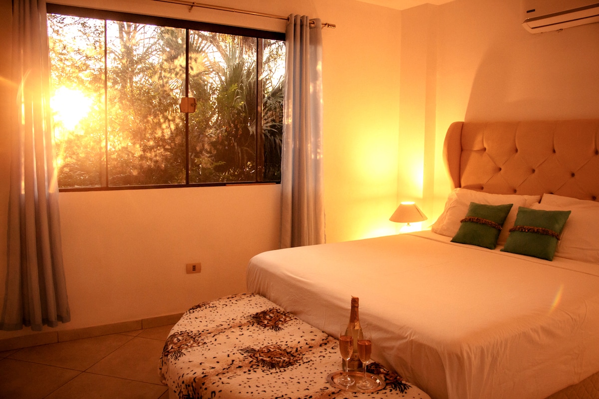 Espectacular vista de 270 grados de las brillantes puestas de sol del lago Ypacarai con el horizonte de la ciudad de Asunción en la distancia. Camas King y Queen en dos dormitorios, ducha + bañera, además de: * Colchón de lujo King y sábanas de algodón * Cocina completa con nevera, horno, cafetera * Casa particular * Estilo moderno con ventanas de techo a piso. * Grande parrilla BBQ * Sofá de cuero, TV * 4 unidades de calefacción, aire acondicionado